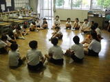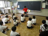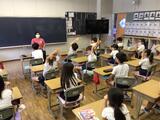 続いて校長先生からのお話です。夏休み前に子供たちに出した宿題「優しい人になろう」について聞いてみると、子供たちがざわつき始めました。中でも、6年生男子は校長先生の呼びかけに反応して、夏休み中に地域のお年寄りにやさしくした出来事をみんなの前で堂々と発表することができました。さすが第二小の6年生です。