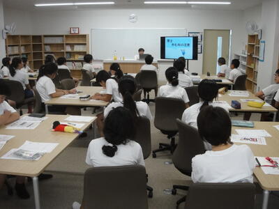 避難終了後は、各教室にて学級ごとに視聴覚教材を基に避難する時に気を付けることやふだんの生活の中でどんなことに気を付けたらよいのかをみんなで考えました。