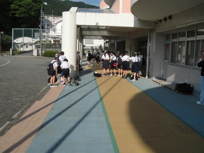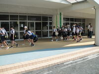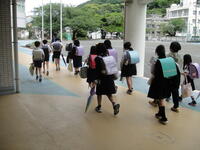 大雨等の災害が予想され、全校児童がすぐに、またはまとまって下校する必要があると判断された時に実施する「一斉下校の訓練」を実施しました。どのグループも真剣に先生の指示を聞き、素早く行動することができました。