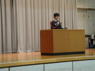 6月の朝礼では、校長先生からクイズがあり、校内に貼ってあるポスターの意味についてみんなで考えました。ポスターのすてきなそれぞれの言葉には、相手の立場になって見たり考えたりすることが共通点として見つかりました。