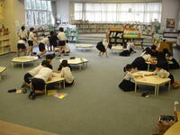 熱海市のセカンドブック事業として、「熱海読み聞かせの会」の皆様や職員の方から本の紹介をしていただきました。10冊の読み聞かせをしてもらい、1年生はどの子も本の世界に浸っているようでした。