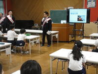 6年生の選挙の授業です。熱海青年商工会議所の皆様のお力添えで、模擬選挙の授業をしていただきました。