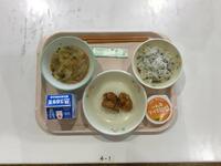 1月31日(金)、月に1度のおたのしみ給食。メニューは、「わかめご飯、鶏のから揚げ、わんたんスープ、牛乳」でした。ボリューム満点、とてもおいしくいただきました。