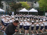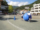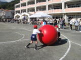 えっほ えっほ えっほ 第二っ子が大玉転がしするって伝えなきゃ(抜きつ抜かれつの大接戦!)