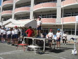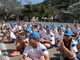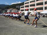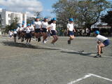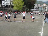 準備体操から色別で行いました。どの色も声を出して気合十分、体をほぐしを終え、